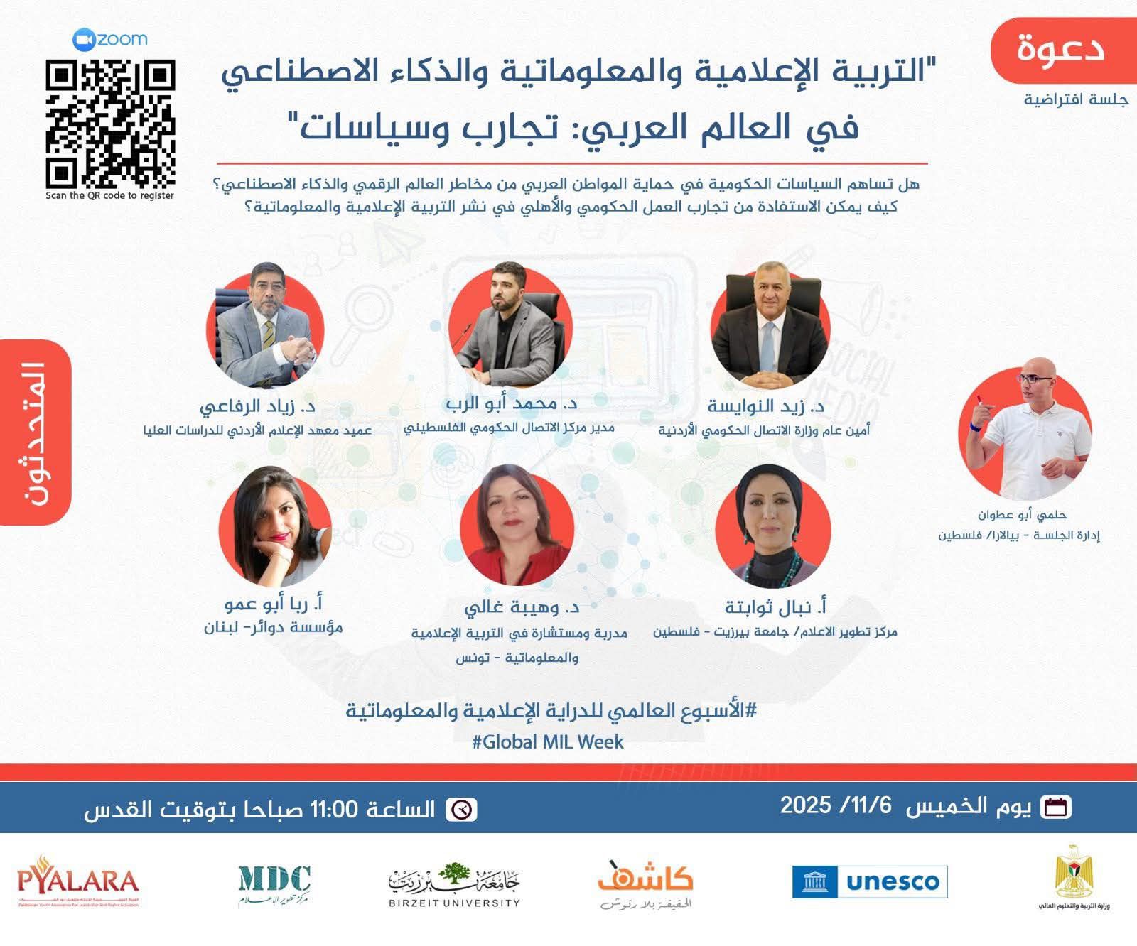 دعوة لحضور جلسة افتراضية ضمن فعاليات الأسبوع العالمي للتربية الإعلامية والمعلوماتية