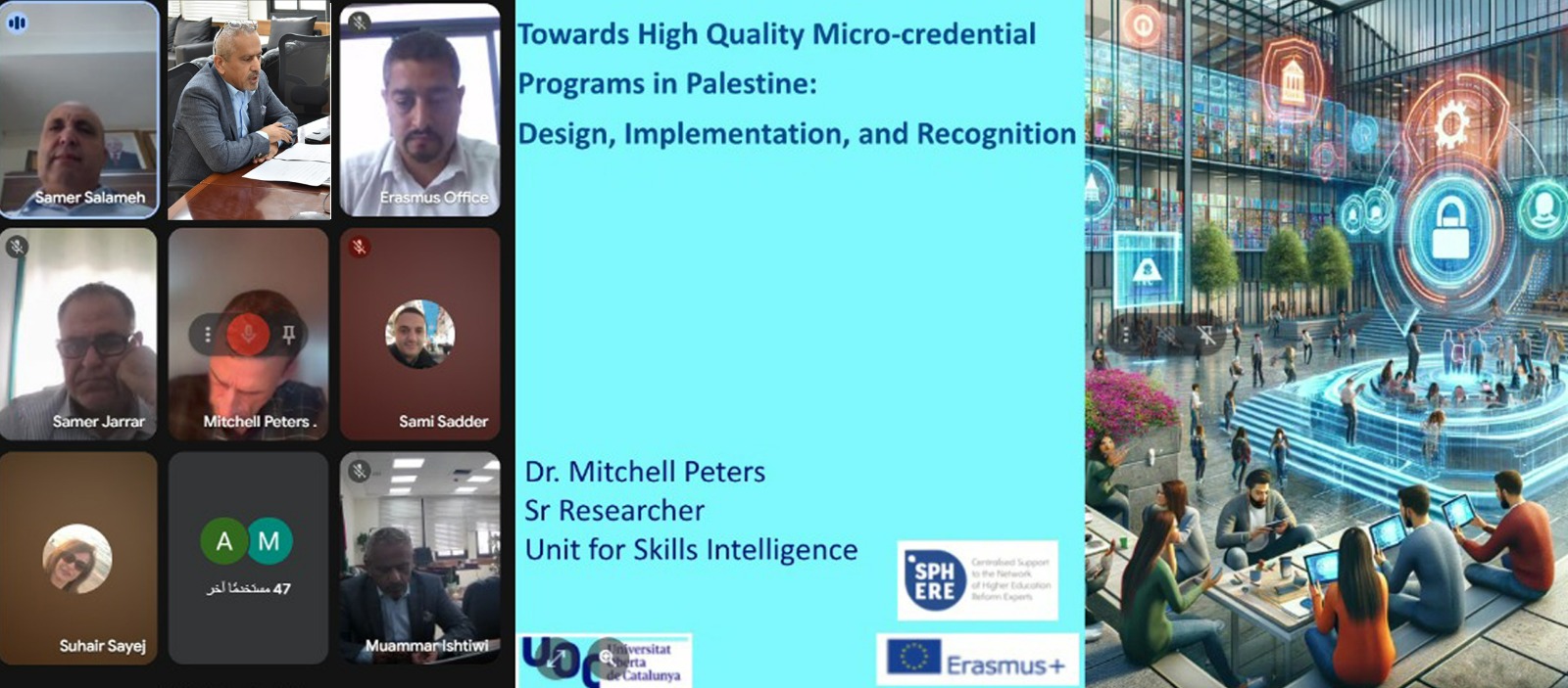 من جانبه، أكد مدير مكتب إيراسموس في فلسطين د. أمير خليل أهمية هذه الندوة التي شهدت مشاركة واسعة شملت مؤسسات التعليم العالي ومراكز التعليم المستمر ونواب رؤساء الجامعات للتخطيط والتطوير، ووحدات ضمان الجودة، وممثلين عن وزارة العمل.