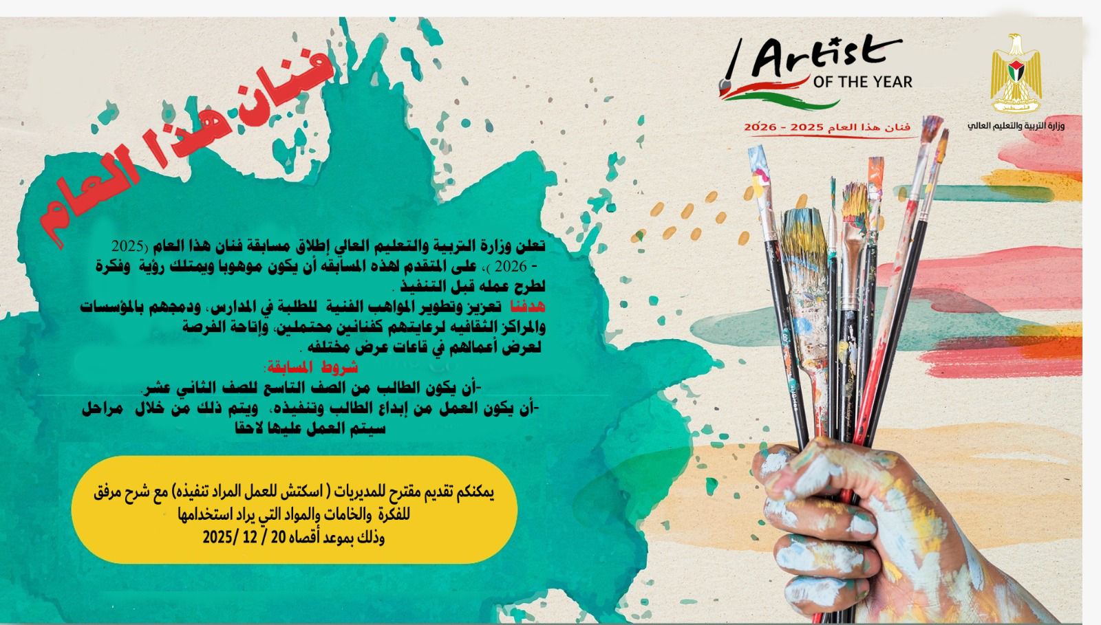 إطلاق مسابقة "#فنان_هذا_العام" لطلبة المدارس