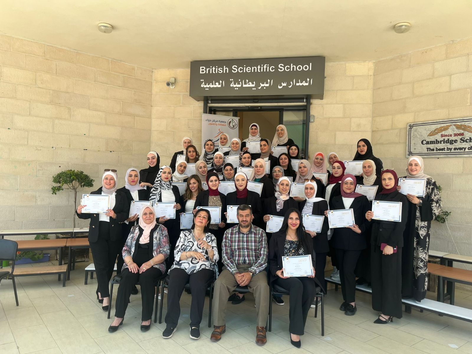 وفي ختام الدورة، تم توزيع شهادات مشاركة على المعلمين والمعلمات الذين أتمّوا البرنامج التدريبي بنجاح، وسط أجواء من التقدير والرضا عن الجهود المبذولة وبحضور رئيسة الجمعية السيدة غادة عبد الهادي وأمنية سر الجمعية السيدة زكية النابلسي