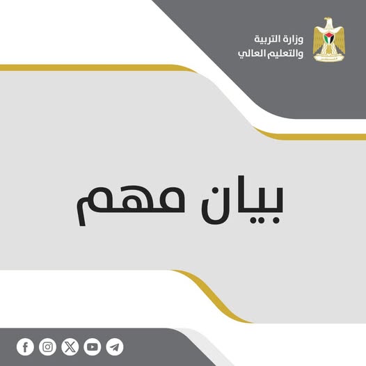 وبناء على هذه المعطيات؛ تعلن الوزارة أن العام الدراسي الجديد 25/24 سينطلق يوم الأحد 2025/2/23 في قطاع غزة، عبر مدارس افتراضية ومراكز / نقاط تعليمية ومنصة wise school مؤكدةً أنه تم توثيق تدرج الطلبة على السجلات الخاصة ب e.school وبما يتيح للطلبة التقدم في مسارهم التعليمي.