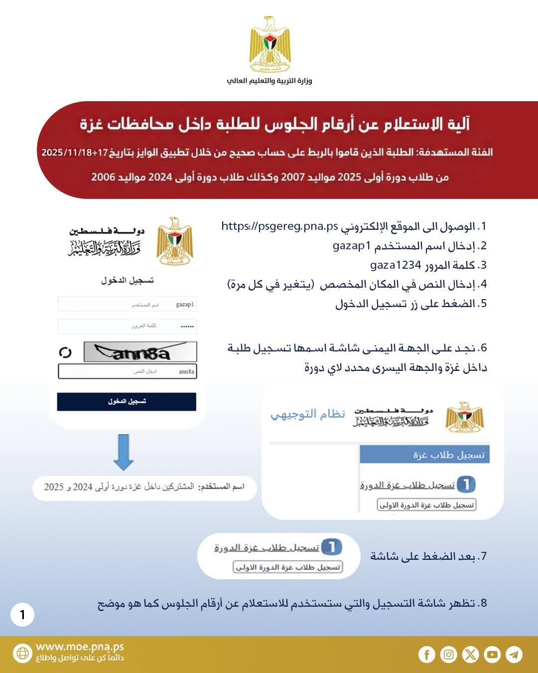إعلان لطلبة غزة الذين قاموا بالربط بتاريخ 17-18 /11/ 2025 حول آلية الاستعلام عن أرقام الجلوس