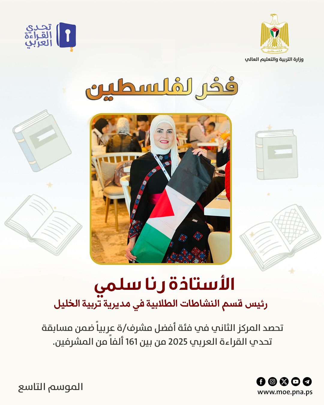 رنا سلمي الثانية عربياً في فئة أفضل مشرف/ة ضمن تحدي #القراءة العربي.